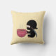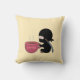 Tiny Ninja with Large Coffee Mug on Yellow Throw Pillow