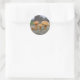 This sheet of round stickers features a beautifully detailed photograph of 4 small yellow toadstools emerging from a log in a park. The background is blurred and the fungi are photographed level so you see the world from their perspective.