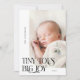Elegant and modern Christmas theme birth announcement card featuring a typography text that says "tiny toes big joy." This is a birth announcement card for the holiday seasons! Add your photos, birth stats, and a message! The background is white.