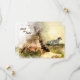 This Save the Date wedding announcements features a beautiful watercolor tribal tipi and colourful Indian horse set against a scenic background. On the back above the text, there is a boho arrow with hearts and vines.