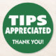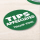 Tips appreciated coaster for special event or the service industry. People sometimes do not know when it is appropriate to tip, and these coasters will let them know that tipping is appreciated and remind them to tip. Promote tipping etiquette!