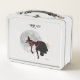 Tipsy Witch On Flying Broom, Lunch Box. Circe is a tipsy witch silhouetted against a full moon, holding her bottle of wine. Transparent design that looks good against a white background, but the stars shine brighter against a darker one.