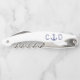 Ce tire-bouchon à thème nautique comporte deux initiales monogrammées en bleu marine avec une ancre entre elles. Fait une faveur unique à donner aux clients mariages. Conçu par l'artiste Susan Coffey.