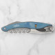 Ce tire-bouchon est bleu avec un motif de cercles et des tirets avec un hibou lunaire avec un corps jaune, une tête bleue et de grands yeux bleus. Customisez votre nom ou votre texte avec les modèles à l'avant et à l'arrière.