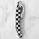 A wine corkscrew bottle opener featuring a classic black and white checkered design. One side has a Cheers text on square shapes. You can edit this in the advanced editor if you like. Beautiful for any situation.