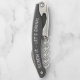 FAITES-LE BOIRE ! Drôle Citation à boire Vin Vis-à-vis / Ouverture de bouteille de bière avec couteau. Design moderne simple gris et blanc avec du texte qui peut être customisé ou supprimé. Le texte personnalisé peut être différent ou identique de chaque côté. Utilisez une citation préférée, un nom, une date importante ou ajoutez une note comme Joyeux anniversaire, Félicitations, Joyeux anniversaire, Bonne année, etc. Un cadeau d'hôte ou d'hôtesse amusant pour une fête ou comme une faveur de mariage pour les invités, la famille ou la fête nuptiale.