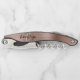 Ce tire-bouchon personnalisé distinctif est doté d'un arrière - plan en métal brossé or rose moderne. Customisez-le avec leur nom en écriture manuscrite noire stylisée sur un monogramme blanc initial.