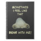 Custom notebook featuring polar bear sleeping in a funny pose photo and text "Sometimes I feel like that Bear with me!" You can change the text, image and background. To personalize this notebook just click on "Customize it" and then delete or change text, change or add your own image and/or change background colour. You can also change font and its size.