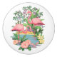 Beaux flamants roses dans leur bouton en céramique rond de coffret ou de tiroir de paradis.