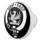 Dessin blanc du blason du Clan Leslie sur fond noir.