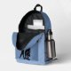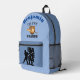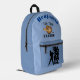 Here's the perfect backpack for the baseball lover in the family. It's two shades of blue and has an illustration of a baseball glove, ball and bat and says "Tis the season". On the pocket is a silhouette of a baseball player and the typography says baseball alongside him. Personalize with your players name.