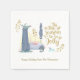 Fun napkins for your festive table with Tis The Season To Be Jolly in an elegant gold script alongside a cute dog with a cat’s tail poking from beneath a blanket. Easily personalise with your greeting for your guests along the bottom.