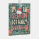 Tis the Season for Family in modern and simple bold serif typography on wreath background.