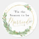 Theme Parties' "'Tis the Season to be Married" wedding envelope seal design features holiday season watercolor botanical greenery accented with holiday berries. Festive modern script typography is paired with traditional typography. #ChristmasWedding #Wedding #HolidayWedding
