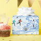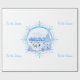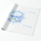 This image is designed with a blue and white snowflake and in the centre is an ice skating pond surrounded by trees decorated with snow. The houses are seen in the backround. The children are enjoying a day on the pond. Tis the season is printed on the sides of the paper. A blue or white backround is available. This wrapping paper is available in assorted styles. Customize to your liking.