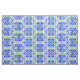 Ce design de tissus contemporains présente un motif géométrique abstrait moderne de diamants bleus et de triangles accentués de jaune, or, orange et turquoise.