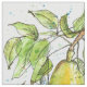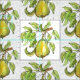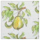 Un élégant tissu fruitier décoré d'une poire dorée qui mûrit sur une branche feuillue dessinée à l'encre sépia et à l'aquarelle dans des tons chauds de vert sur un arrière - plan aux accents de spatter.