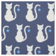 Caricature en silhouette d'un chat blanc aux yeux bleu clair contre la marine (la couleur arrière - plan peut être changée). Une étoile bleue est suspendue à la queue du chat.