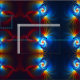 Représentation fractale multicolore de l'altération gravitationnelle; le déplacement de la lumière vers l'extrémité bleue du spectre qui se produit lorsque les photons deviennent plus énergiques lorsqu'ils tombent dans un puits de gravité. Contrairement à l'effet apparent du déplacement vers l'observateur, le déplacement gravitationnel du blueshift est réel, indépendamment de l'angle reçu du photon. Le schisme gravitationnel est une conséquence naturelle de la conservation de l'énergie et de l'équivalence énergétique de masse.