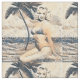 Vintage Pinup Blonde Bikini Modèle agenouillé au bord du sable alors que les vagues l'éclaboussent, pour customiser