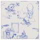 Tissu Blue Willow Kitty Chat Toile de salle de bain
