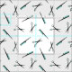 Blanc de tissu avec un motif moderne des ciseaux et des peignes en noir et turquoise.