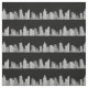 Un dessin d'une ligne d'horizon de la ville forme des rayures pâles intactes contre un ciel noir. Les bâtiments et les gratte-ciel sont dessinés en blanc et noir translucide, donc si vous changez la couleur arrière - plan, la couleur de la ville changera pour la compléter. Ce serait un bon motif pour la courtepointe, les masques et d'autres projets artisanaux. La ville pourrait être découpée en bandes pour les frontières.