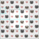 les illustrations originales par Lydia Sanchez d'un carlin de faon et le carlin noir font face entre des coeurs