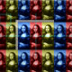 Le chef d'oeuvre de da Vinci chronomètre trois (x3), ensemble dans les couleurs primaires du rouge, jaune et bleu.