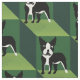 C'est un motif amusant avec un joli dessin animé Boston Terrier sur différentes nuances de vert. Les motifs foncés et clairs font une illusion optique de profondeur.