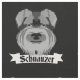 Un design noir et blanc d'un Schnauzer. Cela a été inspiré par une de mes amies qui AIME son mignon chien. Je vois pourquoi, ces chiens ont des visages expressifs magnifiques avec des museaux typiquement barbus. Il y a une bannière en noir et blanc sous le visage des chiens qui lit Schnauzer.