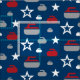 Comporter de tissu étoiles et motif de bordage de roches en rouge, le blanc et le gris sur l'arrière - plan bleu. Perfectionnez pour des bigoudis et des fans de bordage.