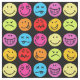Des visages colorés amusants design motif. Certains sont heureux, stupides, en colère, en train de se réveiller, joyeux, amusants, amoureux, déchirés, sortis de la langue et éprouvent des émotions plus amusantes dans des couleurs vives et colorées ; jaune, orange, rouge, bleu, rouge, rose et violet, sur un arrière - plan noir.