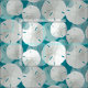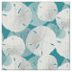 Tissu avec dollars de sable motif en blanc et bleu clair. L'Arrière - plan est turquoise foncé, bleu-vert couleur et est facile à changer. De petits et grands dollars de sable se chevauchent pour créer ce design de plage. Choisissez un matériau et une taille préférés.