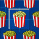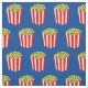 Tissu cool à thème avec de mignonnes boîtes de pop-corn avec du maïs soufflé jaune dans un emballage rayé rouge et blanc. Joli arrière - plan bleu pour une nuit avec les étoiles. Faites des rideaux ou des vêtements cool avec ce motif amusant.