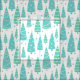 Un motif hivernal d'arbres de Noël illustrés, bleu pastel et vert, aménagé en une forêt sans fin d'arbres festifs. Elles sont décorées de guirlandes et d'étoiles.