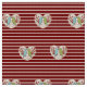 Ce tissu présente le design original de HoMeArts des lovebirds verts d'oeuf et d'avocat de Robin, entourés de branches et de baies rouges dans un coeur jaune citron, se démarque d'un arrière - plan de rayures rouge foncé et crème.