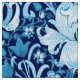 Tissu dans une impression florale vintage de William Morris des lis et des iris stylisés, numériquement augmentée et colorée, aux nuances du bleu et du blanc de ciel sur un arrière - plan foncé de bleu d'indigo