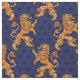 Tissu Lion médiéval Blue Fleur de Lis d'or
