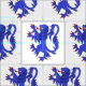 Ce dessin de Richard H. Fay présente un azure rampant de lion héraldique, un lion bleu dépeint en profil remontant sur ses pattes arrières, prêt à déjouer tous les agresseurs.
