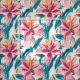 De gros pétales audacieux aux tons rayonnants de rose, magenta et jaune soleil fleurissent aux côtés de gracieuses nénuphars, le tout dans un style peint et brossé à la main. Des feuilles turquoises expressifs balancent vers l'extérieur avec un mouvement fluide, ajoutant contraste et profondeur contre un arrière - plan blanc immaculé. La composition se sent vivante de mouvement et de joie, équilibrant le drame des fleurs surdimensionnées avec l'élégance des lys. Imprimé sur un tissu de haute qualité, ce design offre à la fois beauté et polyvalence, parfait pour la tapisserie, les draperies, les coussins de relevé ou les pièces de mode qui appellent une énergie vibrante. Durable mais doux au toucher, le tissu présente la richesse de la couleur et l'art du brossage, ce qui en fait un choix idéal pour les intérieurs modernes ou les projets audacieux et créatifs.