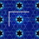 Une simple image fractale aux tons bleus représentant plusieurs instances d'un David magen (Étoile de David) formé par des lignes croisées en verre ou en cristal, l'étoile centrale est remplie de bleu foncé.