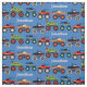 Tissu motif de camion monstre. Le texte et la couleur arrière - plan sont personnalisables.