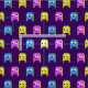 Tissu monstres Aliens pixel graphique rose jaune bleu