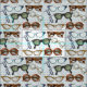 Le tissu fait sur commande exclusif revendique un amusement, motif original de nouveauté conçu par Leslie Sigal Javorek, comportant des paires multiples de lunettes et de lunettes de soleil à la mode répandues contre une feuille de travail de formules imprimées à la main de maths. Tous les styles des cadres en verre sont variés, y compris le rétro plot réflectorisé, les jantes rondes de fil d'or, verres rectangulaires de mamie de fil, écaille, les lunettes de soleil des hommes de style des années 50, et plus. Pour l'habillement, le métier projette, des rideaux, etc.