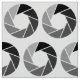 Un motif composé de symboles d'ouverture de lentilles de caméra. Le design peut être customisé et les motifs peuvent être arrangés de différentes manières.