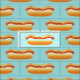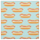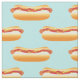Ce tissu présente un motif d'une délicieuse illustration de hot dog de dessin animé. Le hot dog a un bon petit pain et il y a du ketchup et de la moutarde au-dessus de la saucisse.
