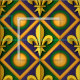 Tissu avec un motif sans soudure avec fleur de lis (fleurs de lys) aux couleurs de la Nouvelle-Orléans Mardi Gras; design pourpre, doré et vert