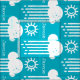 Cute Sunshine and Rain Nuages Moderne Aqua Blue Retro Fabric personnalisé