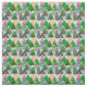 Ce tissu a un design d'arbres de Noël dans différentes nuances de vert, rose, argent et or avec différentes décorations.